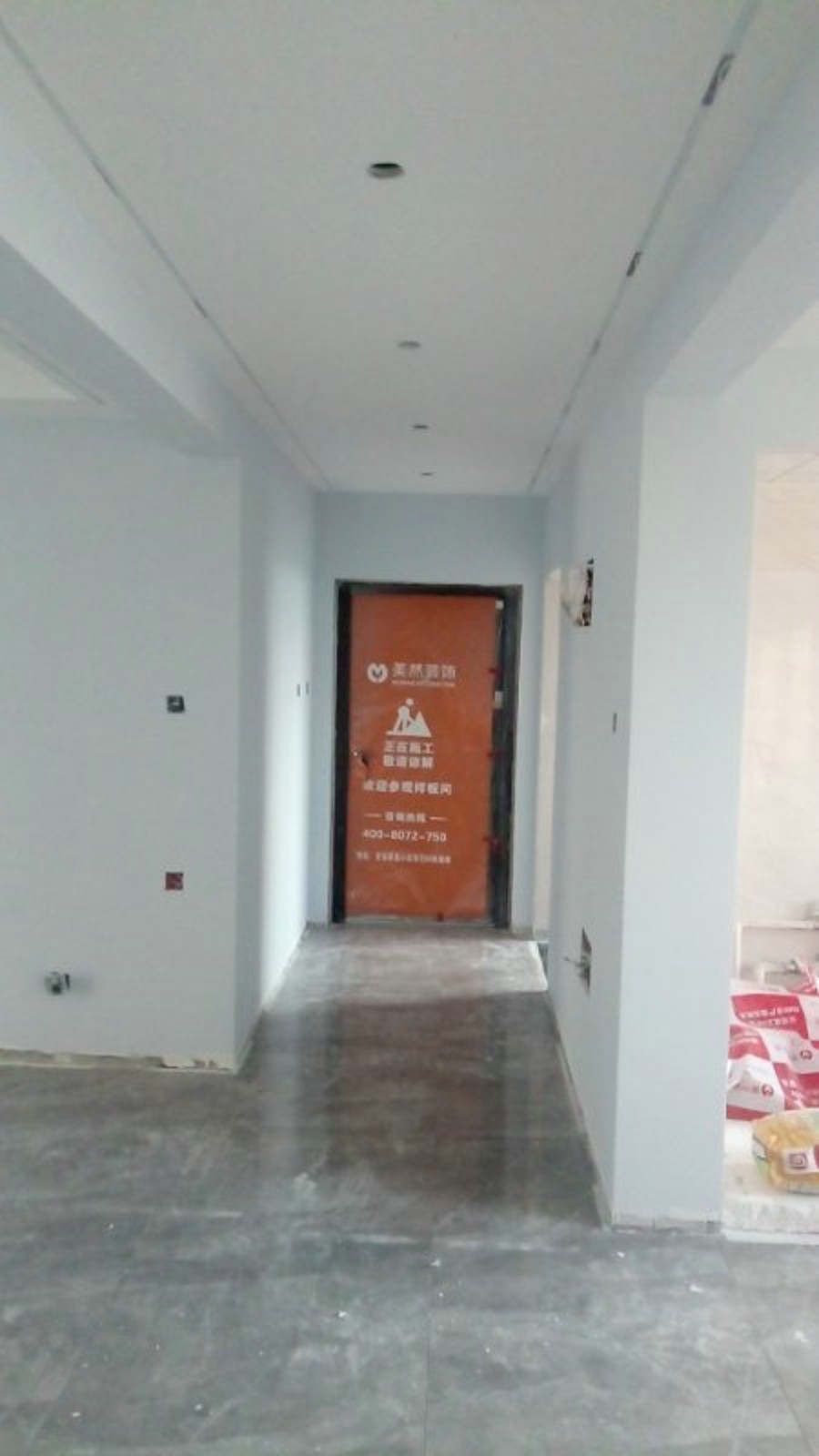 六、時(shí)間:5月8日,今天下著小雨,媳婦還是催著我來看看,地面已經(jīng)做好的保護(hù)了,工程負(fù)責(zé)人昨天已經(jīng)微信跟我說已經(jīng)對(duì)油工進(jìn)行交底,下來油工開始施工,做好保護(hù)就是為了防止污染地面。美然裝飾有一點(diǎn)做的非常好,就是有什么事,在微信群里會(huì)及時(shí)溝通,設(shè)計(jì)師和工程負(fù)責(zé)人都在這個(gè)群里,讓人很放心。